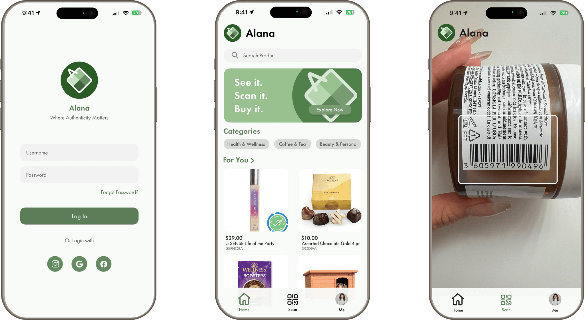Alana Enabled is a mobile app that helps users scan barcodes to access authentic product listings from verified retailers. It’s built around the idea that trust and ease should go hand-in-hand. But when our team stepped in, the original app lacked the clarity, polish, and personalization to support that mission. We focused on turning it into a cleaner, faster, and more thoughtful shopping experience.