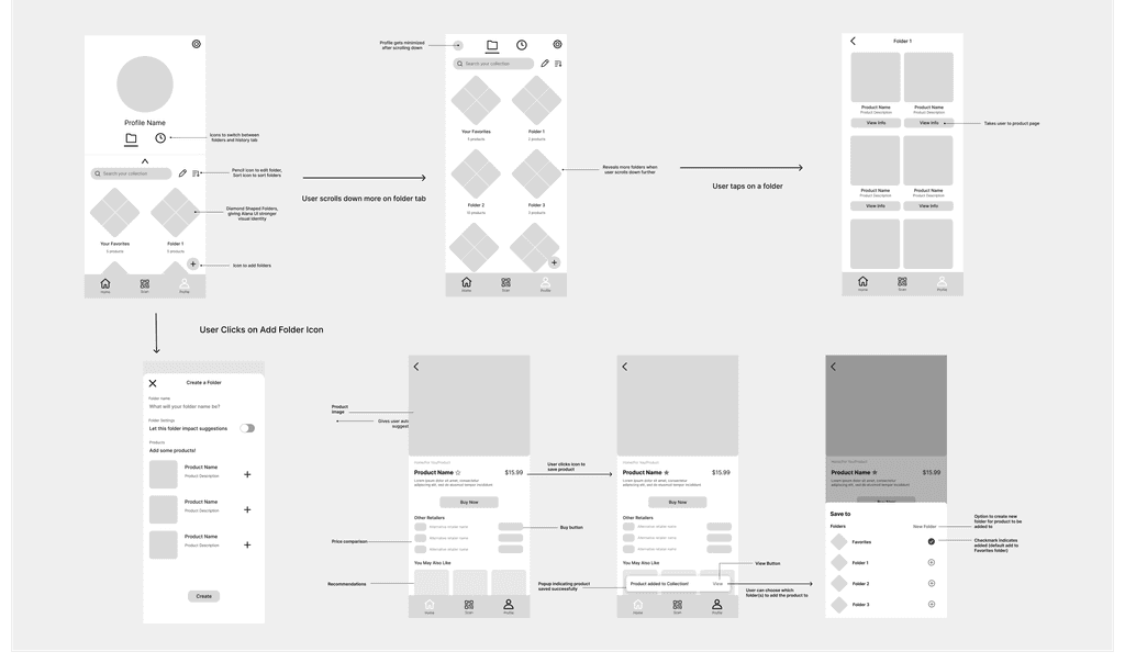 Collections and history tabs to allow users to save, organize, and revisit products easily